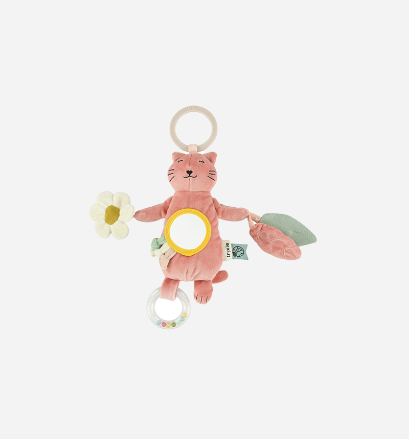 La joguina espiral de Trixie té tres elements d'activitat diferents que divertiran el teu nen. Es pot enrotllar al voltant de qualsevol manillar de cotxet o d'un parc infantil .