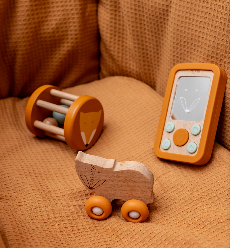 Fet per delectar les petites mans. Aquest sonall rodant amb forma d'animal serà el nou company preferit del nadó. Estimula la coordinació mà-ull, la motricitat fina i el moviment del cap, a més de ser perfecte per al tummy time (temps de cap per avall). Un regal encantador i educatiu.