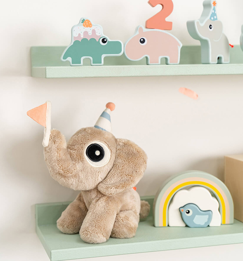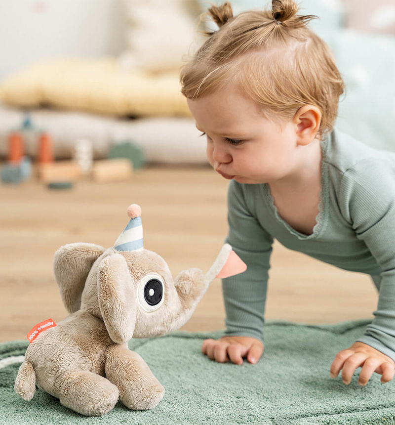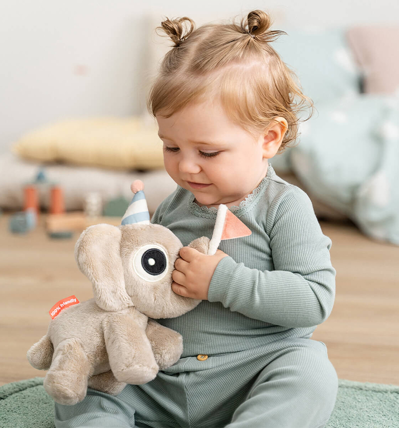 Adorable peluix Elphee de Done by Deer , súper suau i presentat en una elegant caixa de regal. Perfecte per abraçar, acompanyar el nadó i convertir qualsevol ocasió especial en un record inoblidable.