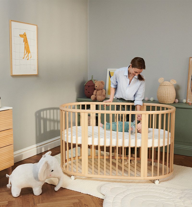 The Stokke Sleepi V3 crib is ideal as a first bed for your newborn , as it creates a nest-like environment that helps the baby feel comfortable and safe.