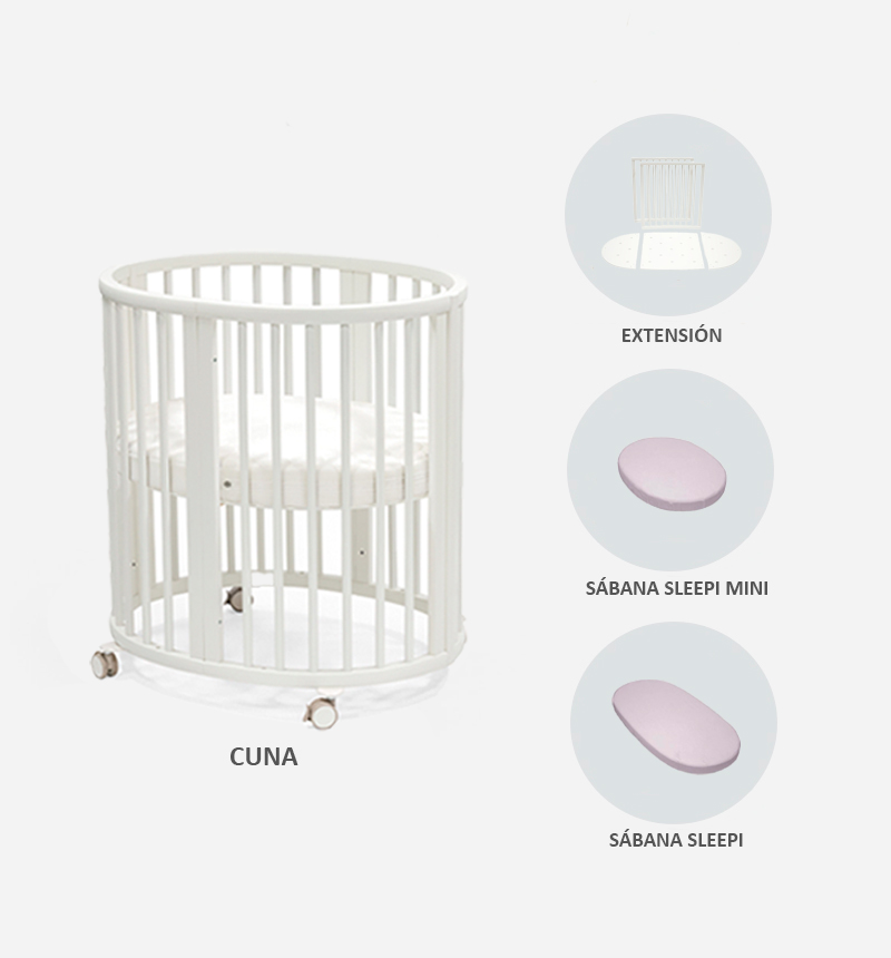This pack includes the Stokke Sleepi V3 crib, its official mattress, and a fitted sheet , combining everything needed for a safe, firm, and comfortable sleep. The mattress, fully breathable thanks to its 3D mesh and Sorona core, prevents overheating and meets the most demanding safety standards. The soft fitted sheet, adapted to the crib's unique shape, features an elasticated edge that ensures a perfect fit.
