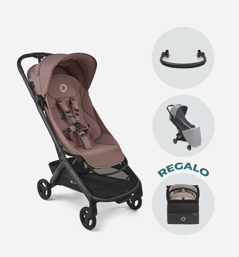 Includes: Bugaboo Butterfly 2 stroller, safety bar and rain cover, and a free Butterfly 2 carrying bag