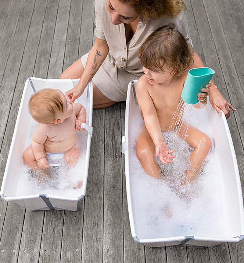 La bañera Flexibath XL ahora más amplia y espaciosa, crece con tu pequeño. Es apta para bebés en crecimiento y niños pequeños de hasta aproximadamente los 6 años.