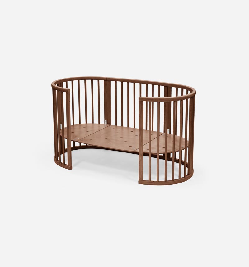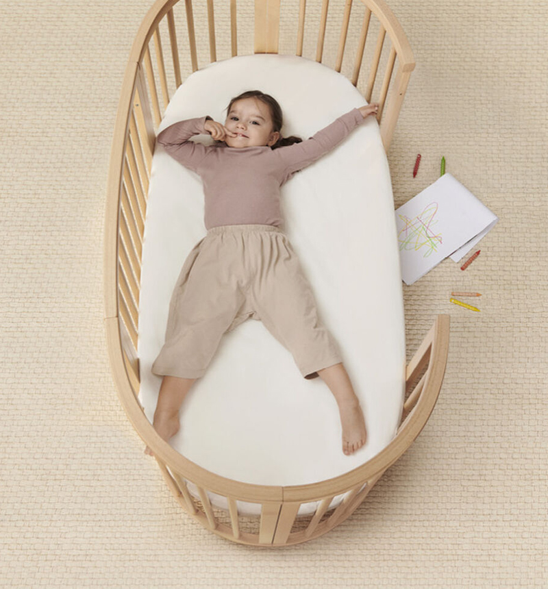 Su suave diseño ovalado envuelve a tu bebé y le ofrece comodidad para dormir plácidamente y tener los sueños más dulces. Se puede usar desde el nacimiento hasta los 5 años gracias a la altura ajustable del colchón. Una vez que tu hijo sea lo suficientemente mayor como para entrar y salir de la cama por sí solo, puedes retirar las ruedas y un lado de la cama.