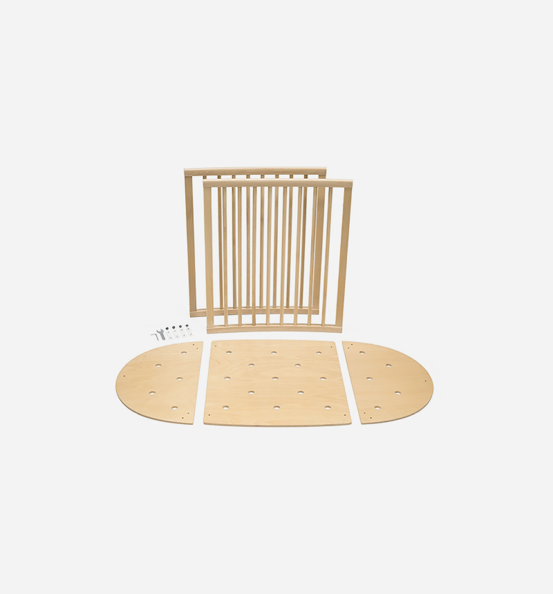 El kit de extensión permite convertir tu Stokke Sleepi Mini en la cama Stokke Sleepi, conservando un entorno familiar a medida que tu bebé crece. Amplía la cama hasta 141 cm.