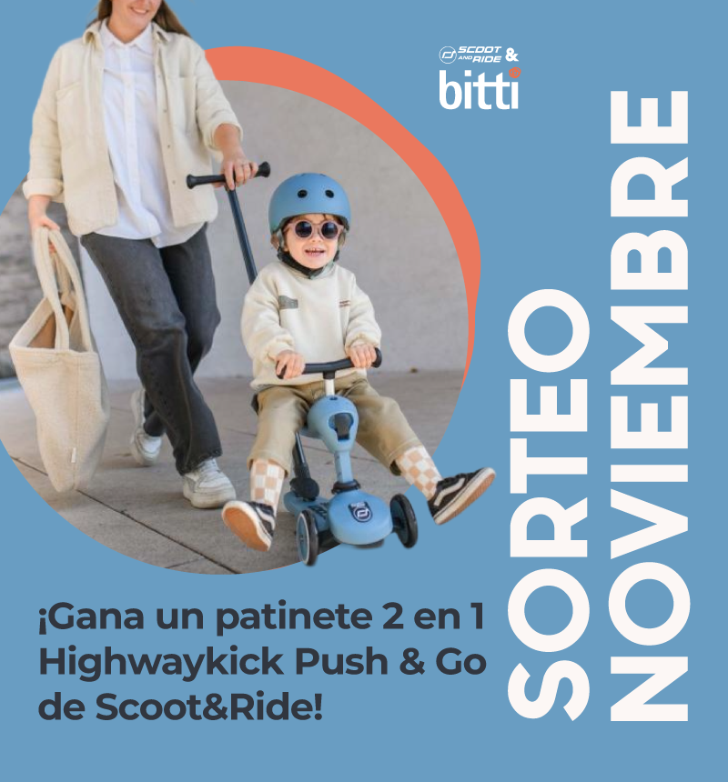El premio es un patinete 2 en 1 Highwaykick Push and Go valorado en 129,99€. El premio es personal e intransferible. Solamente se retornará el valor del premio, en caso de que el ganador haya comprado un patinete 2 en 1 Highwaykick Push and Go durante el mes de noviembre en bitti o bitti.es. El premio incluye el envío del mismo.